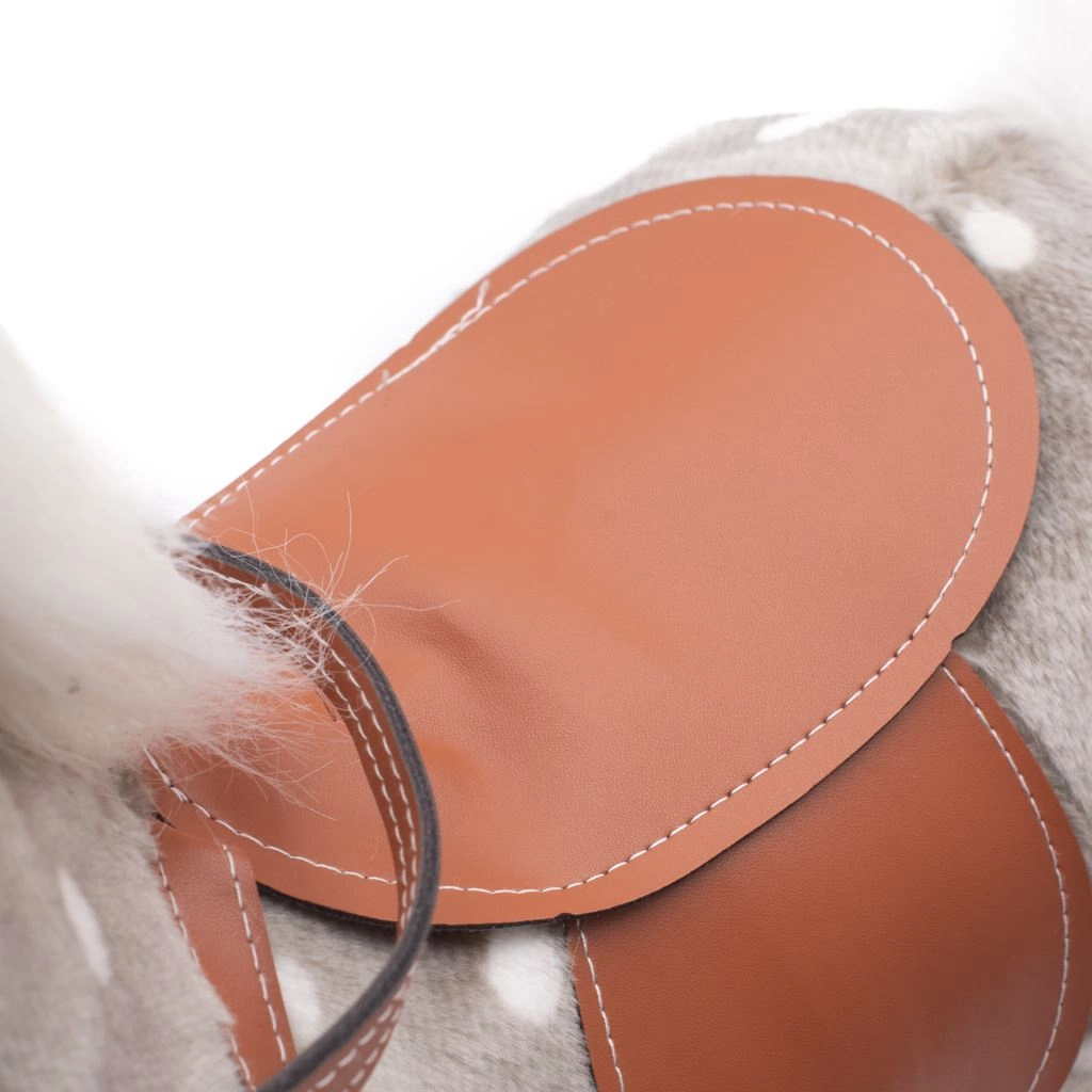 Nežen material in oblikovan sedež zagotavljata udobje pri guganju. Detajli iz eko usnja delujejo realistično in vzdržljivo.