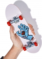 Tech Deck handboard SANTA CRUZ maxi 27 cm prinaša avtentičen občutek skateoardanja v praktičnem večjem formatu. Zahvaljujoč predmontirani deski z grafiko Screaming Hand, kovinskim truckom in vzdržljivim kolescem lahko uživate v realistični izvedbi trikov in stabilnem upravljanju.