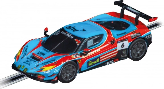 Stilski dirkalnik Ferrari 296 GT3 za avtomobilske steze Carrera GO!! in GO!! Plus v merilu 1:43 prinaša hitro in stabilno vožnjo zahvaljujoč dvojnim kontaktnim ščetkam, močnemu magnetu in vodilni letvi za zanesljivo držanje v stezi.
