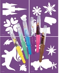 Odkrijte zabavno ustvarjanje s priljubljenim motivom Ledenega kraljestva. Set pihalnih flomastrov omogoča otrokom preprosto ustvarjanje unikatnih slik – dovolj je pihniti skozi flomaster preko šablone in barva se nežno razprši po papirju. Idealno za domače ustvarjanje, okrasitev in izdelavo voščilnic.
