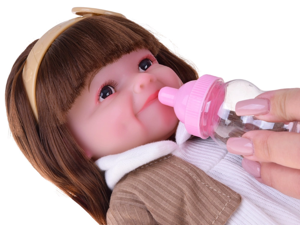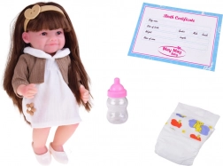 Punčka ima prijetno mehko gumijasto telo in premične okončine, zato jo zlahka nastavite v različne položaje. Z dodatki, kot so steklenička, plenička in rojstni list, bodo otroci doživeli pravo skrb za dojenčka – hranjenje, previjanje in toplo dobrodošlico v družino.