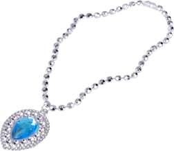 Srebrna tiare z modrimi kamni in ujemajoča ogrlica s kapljičastim obeskom dodata vsakemu preoblečenemu videzu pravljičen šarm.