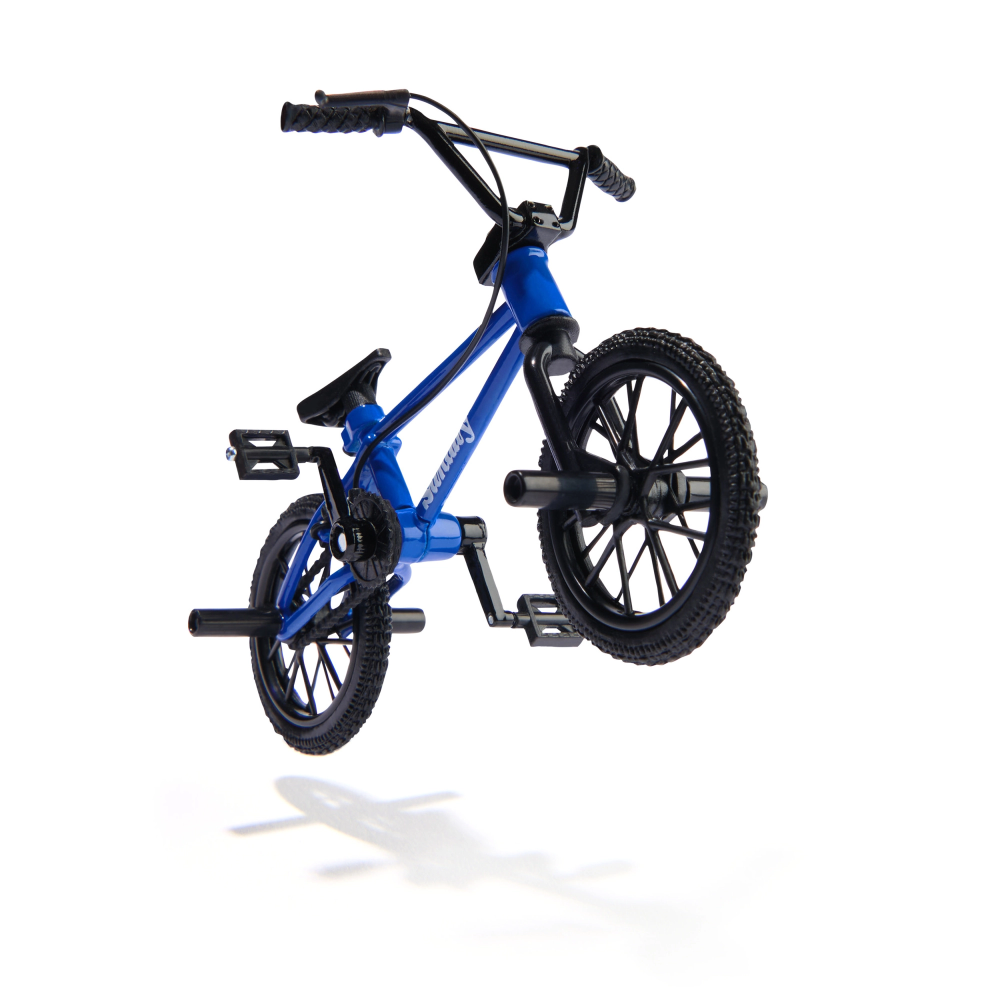 Minaturni BMX finger bike znamke Tech Deck v temno modri barvi SUNDAY prinaša realistično izvedbo za trening in izvajanje trikov s prsti. Zaradi kovinskega okvirja, funkcionalnega krmiljenja in pegov je idealen za začetnike in zbiratelje. Odlična zabava, ki razvija koordinacijo prstov in kreativnost. V paketu so tudi nalepke za personalizacijo.