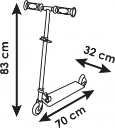 Univerzalna barvna izvedba z grafiko Strele bo všeč fantom in dekletom. Tiha, nedrseča kolesa zagotavljajo uglajeno vožnjo po pločniku in stabilnost. Skiro je idealen za vsakodnevno zunanjo zabavo in razvoj motorike.