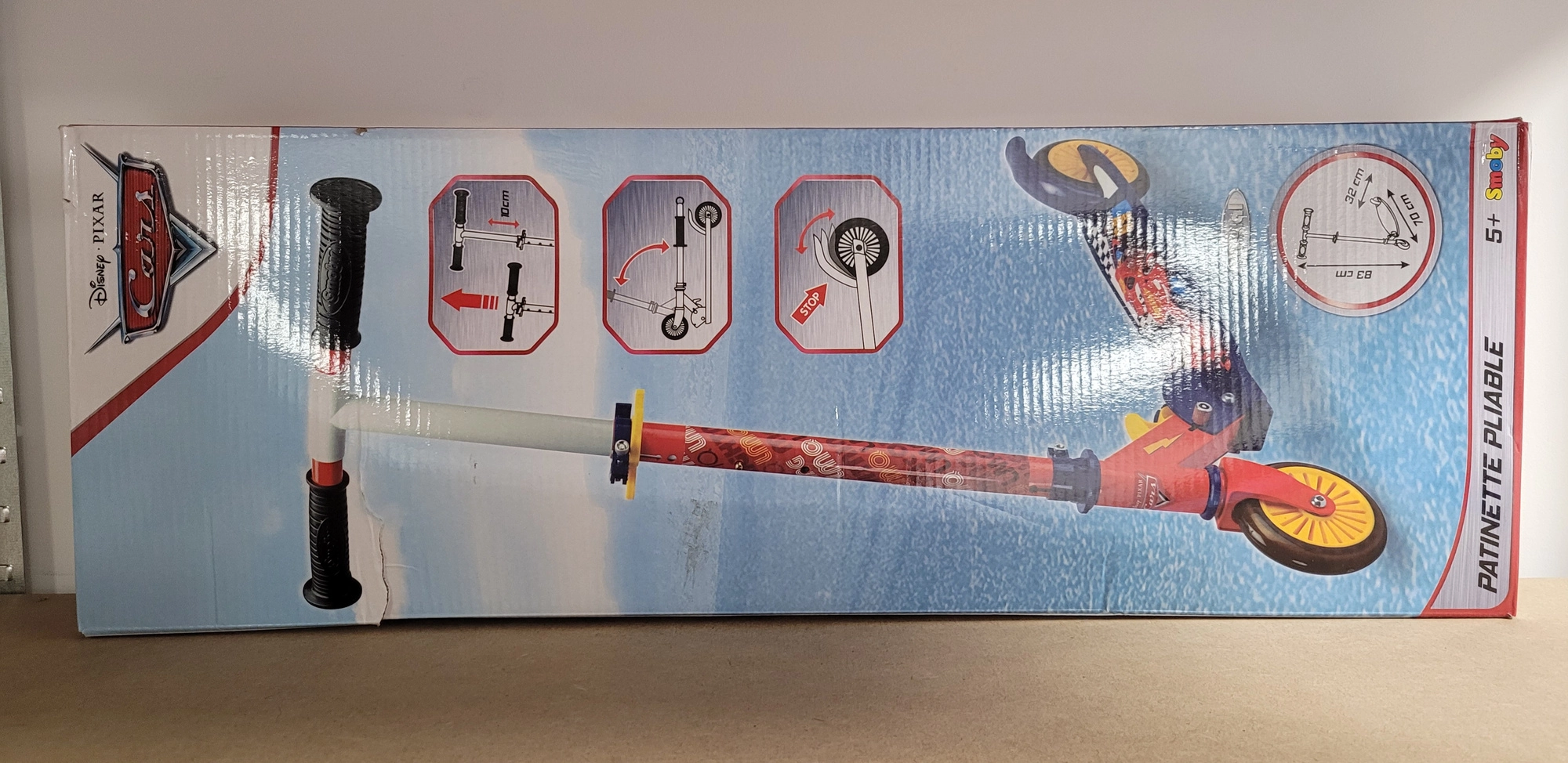 Lahek in vzdržljiv otroški skiro z motivom Avtomobili CARS – Strela McQueen bo navdušil vsakega malega voznika. Ima aluminijasto konstrukcijo, nastavljivo krmilo (73–83 cm), nedrsečo široko stopnico, tiha kolesa in nožno zavoro. Največja nosilnost 50 kg, idealen od 5 let. Opozorilo: poškodovana embalaža, manjše praske/okruški.