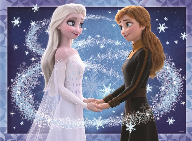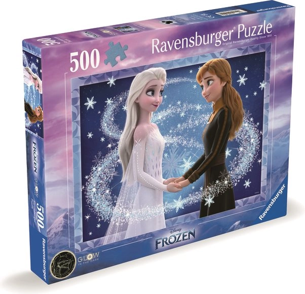 Uživajte v čarobnem sestavljanju s puzzli RAVENSBURGER iz pravljice DISNEY Ledeno kraljestvo. Sliko z Elso in Anno sestavlja 500 koščkov z kakovostnim tiskom in natančnim izrezom. Poseben fluorescenčen učinek sveti v temi po izpostavitvi svetlobi, zato motiv zažari tudi po ugašanju luči. Idealno za relaksacijo, družinsko zabavo in kot izvirno darilo.