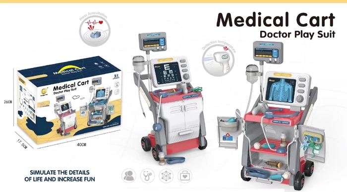 Ta rožnat zdravniški voziček otrokom nudi vse, kar potrebujejo za igro ambulante. Zahvaljujoč zvočnim učinkom je igra še bolj realistična ter spodbuja domišljijo in socialne veščine. Set je izdelan iz kakovostne plastike in je primeren za otroke od 3 let.