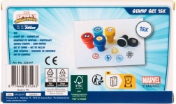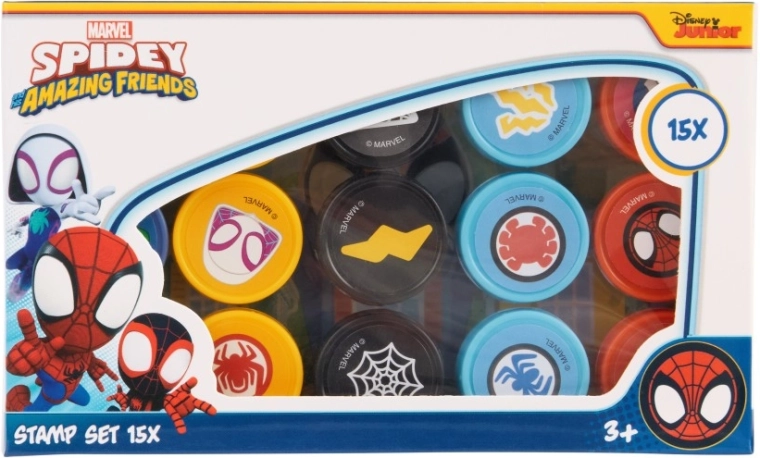 Set vsebuje 15 okroglih žigov z ikoničnimi motivi Spideya in njegovih prijateljev – idealno za papirnate projekte, voščilnice in scrapbooking.