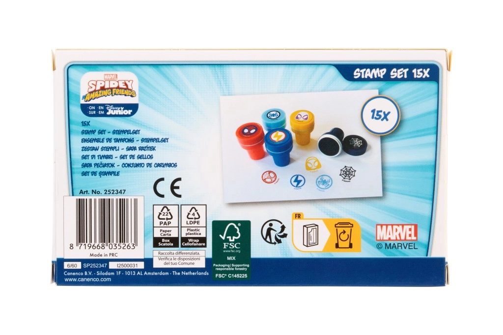 Odkrijte svet kreativne zabave z setom žigov, navdihnjenim s serijo MARVEL Spidey in njegovi čudoviti prijatelji. Otroci bodo vzljubili žive barve, enostavno uporabo in številne motive, s katerimi bodo ustvarili izvirne slike, vabila ali okrasili šolske zvezke.