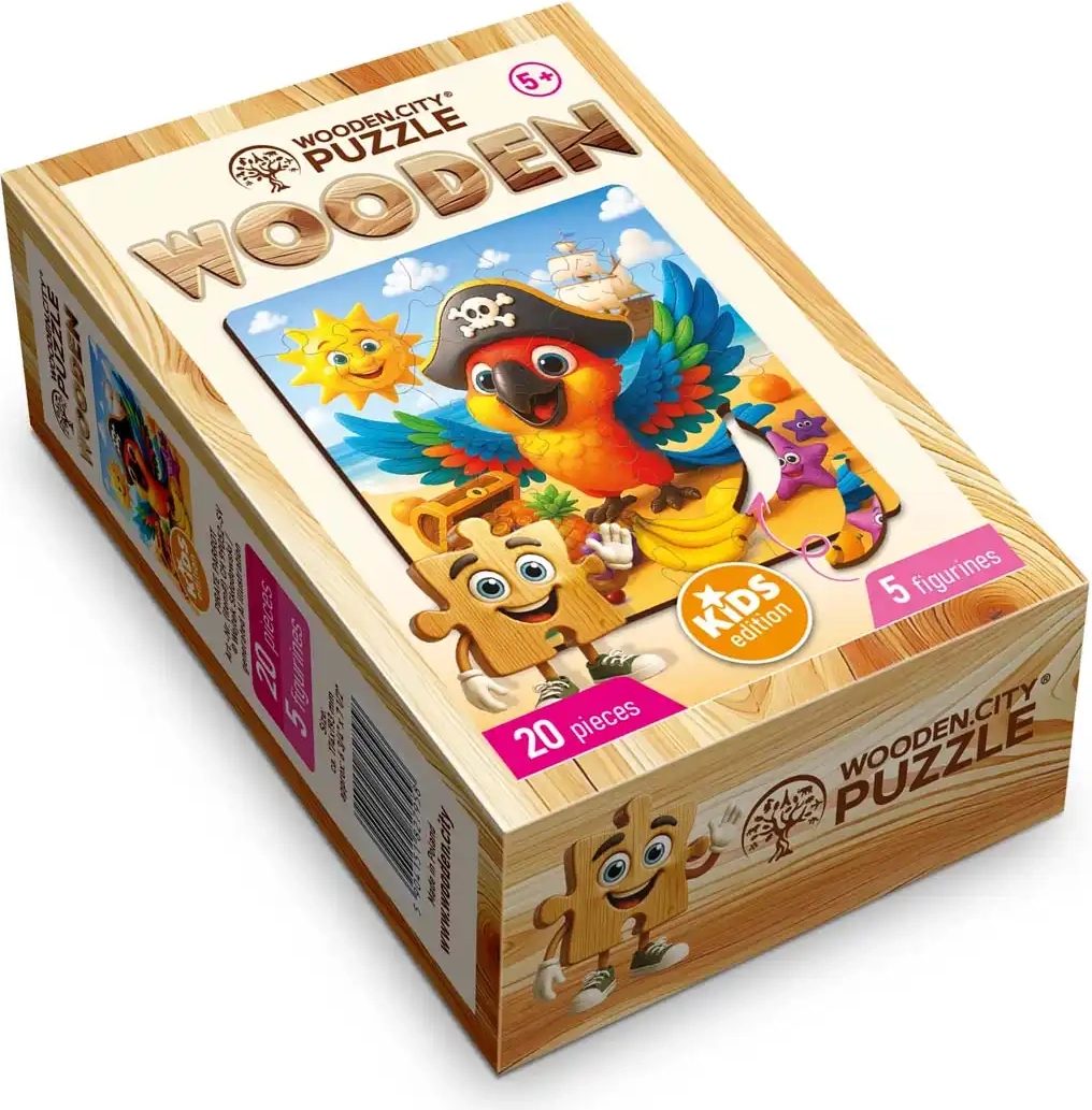 Lesena sestavljanka WOODEN CITY Piratski papagaj je idealna izbira za prvo sestavljanje ali kot zabavno darilo. Zaradi skrbne izdelave in čudovitega motiva bodo otroci uživali v vsakem kosu in postopoma ustvarili očarljivo sceno papagaja v piratskem slogu.