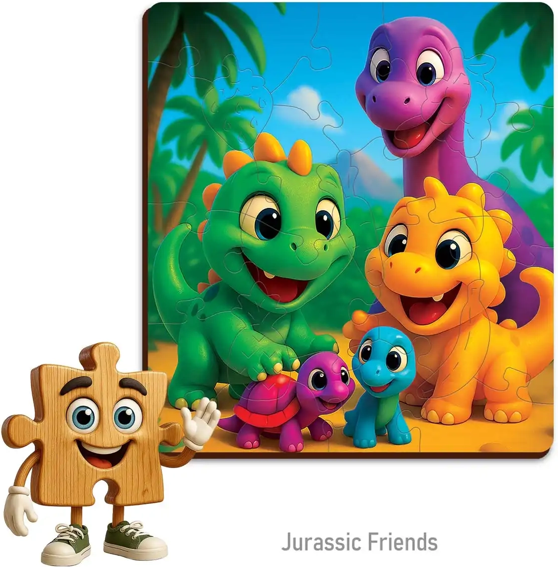 Ta lesena sestavljanka z motivom dinozavrov je idealna izbira za prve korake v svetu puzzlov. Vsak košček je izdelan s preciznostjo in skrbnostjo, po sestavi pa ustvari očarljivo sceno, ki jo bodo otroci vzljubili. V pakiranju najdete tudi ločeno predlogo, ki pomaga pri orientaciji med sestavljanjem.
