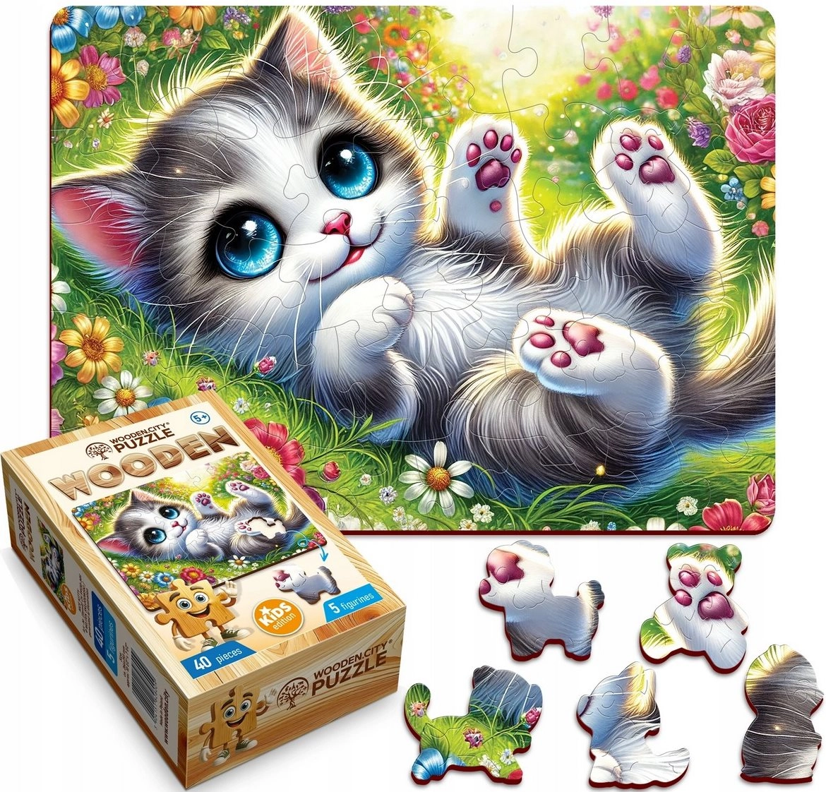 Lesene sestavljanke prikupno mucko 40 koščkov
