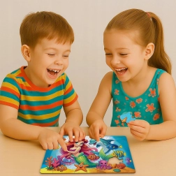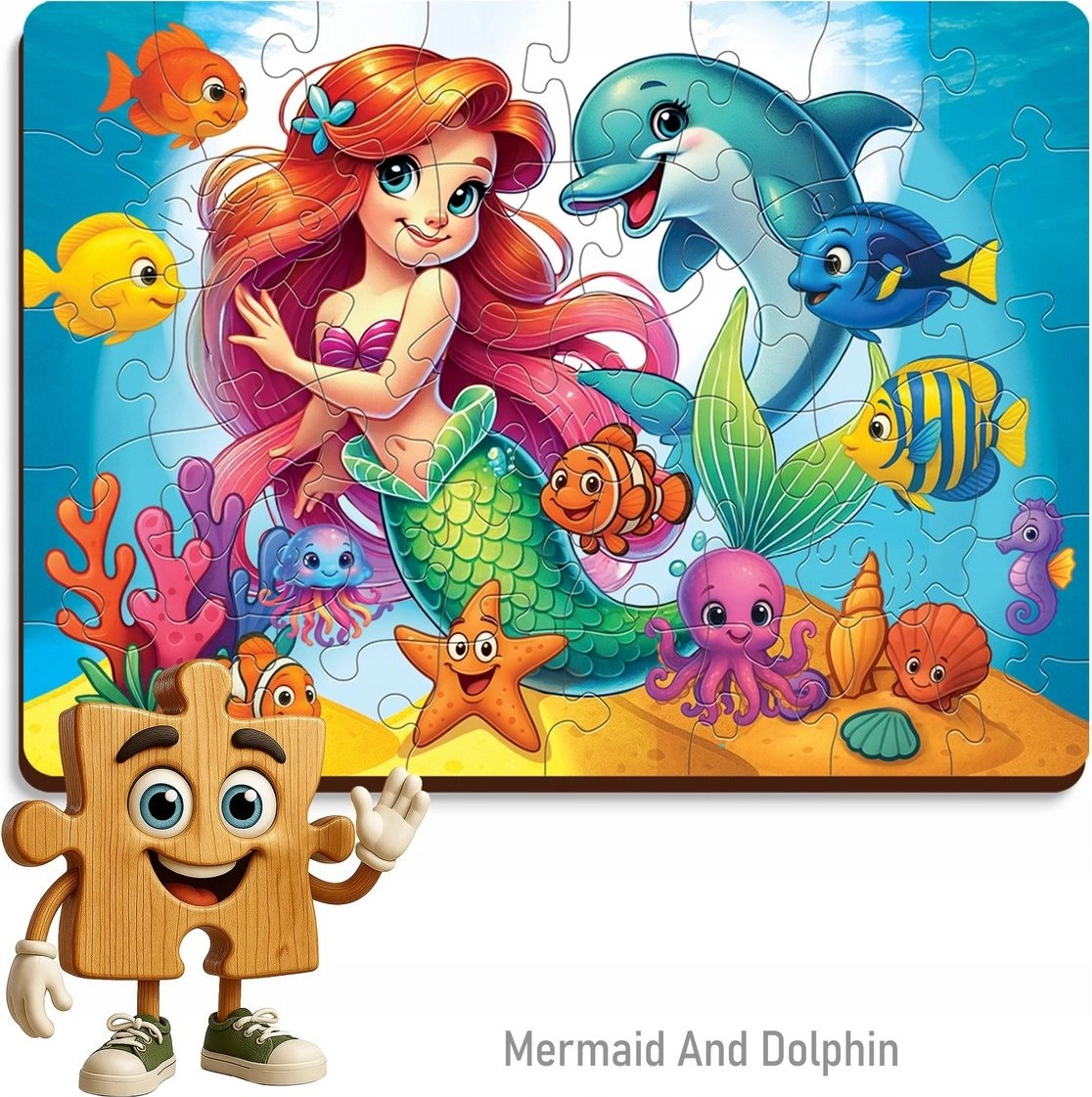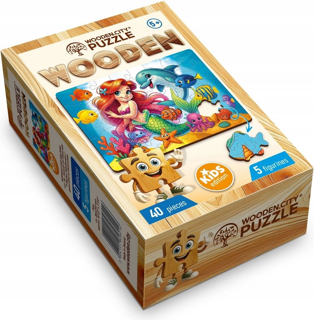 Lesene sestavljanke WOODEN CITY z motivom morske vile in delfina prinašajo otrokom čudovito vizualno izkušnjo in veselje ob dokončani podobi. Zaradi kakovostne izdelave se kosi prijetno sestavljajo in odlično prilegajo. Sestavljena slika meri približno 26,6 × 19,3 cm, idealno za večkratno sestavljanje ali razstavitev.