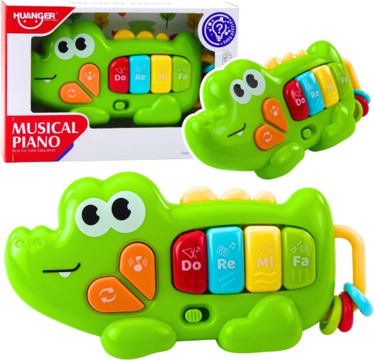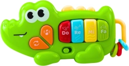 Spoznajte veselega krokodila, ki prebuja ljubezen do glasbe že od malih nog. Otroci lahko pritiskajo barvite tipke z osnovnimi toni Do, Re, Mi, Fa, raziskujejo različne melodije in zvoke ter tako razvijajo posluh in občutek za ritem. Praktična velikost zagotavlja, da igračo zlahka vzamete v voziček, avto ali na sprehod.