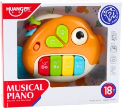 Glasbeni klavirček ribica je idealna prva glasbena igrača za malčke. Štiri jasno označene tipke Do, Re, Mi, Fa ob pritisku predvajajo vesele melodije in posamezne tone, s čimer naravno razvijajo občutek za ritem in zaznavanje zvoka. Ergonomska oblika ribice se odlično prilega majhni roki, lahko ohišje ter gladki, zaobljeni robovi zagotavljajo varno in udobno uporabo.