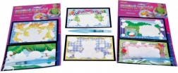 Vsebina paketa vsebuje dve sliki z različnimi motivi in en čaroben čopič, ki ga napolnite z vodo in slika je pripravljena za risanje. Ko se slika posuši, se bela plast ponovno pojavi in otroci lahko začnejo ustvarjati znova.