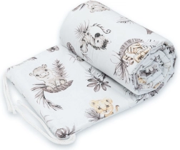 Mehka zaščitna obloga za posteljico NEW BABY z motivom Safari ščiti dojenčka pred prepirom in udarci. Izdelana iz 100 % bombaža z antialergijskim polnilom iz poliestra, enostavno se pritrdi na posteljico s pomočjo vrvic. Velikost približno 180 × 32 cm.