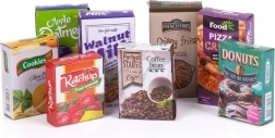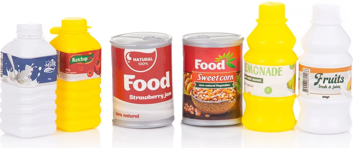 Papirnate škatlice živil ter otroške plastenke in pločevinke igri dodajo pristnost – idealno za sestavljanje nakupovalnih seznamov in razvrščanje živil.