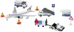 Ta podrobno izdelan letališki set otrokom ponuja vse, kar potrebujejo za upravljanje lastnega malega letališča. Vključuje veliko letalo, dve servisni vozili in catering vozilo, dopolnjeno z nujnimi dodatki in oznakami za varen obrat.