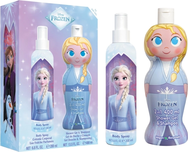 Odkrijte čarobnost FROZEN v svoji kopalnici. Set združuje praktične izdelke za vsakodnevno nego: lahek sprej za telo za takojšen občutek svežine ter gel za prhanje s šamponom 2v1, ki nežno umije telo in lase. Odlično kot darilo ali za vsakodnevno razvajanje.