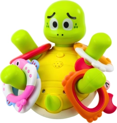 Po potopitvi v vodo želva samodejno sproži curke vode, ki kopanje spremenijo v zabavno predstavo in zadržijo otrokovo pozornost.