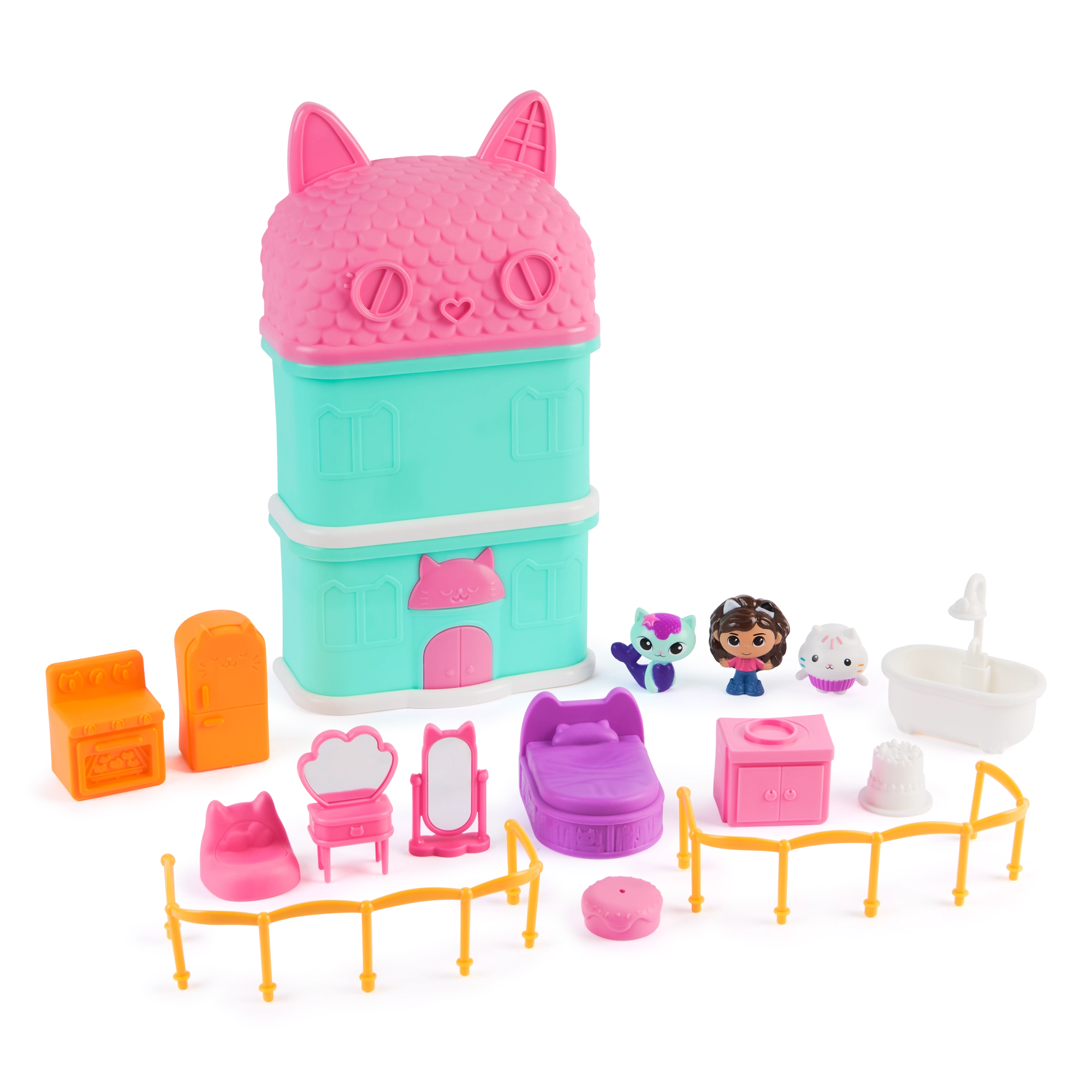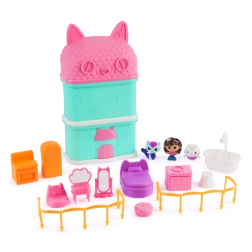 Mini hiška, navdahnjena z priljubljeno serijo GABBY'S DOLLHOUSE znamke Spin Master, otrokom prinaša ure zabave. V pakiranju najdete priljubljene like in tematsko opremo sobic, s katerimi si otroci zlahka ustvarijo lastne zgodbe. Kompaktna velikost omogoča, da hiško preprosto prenašate in hitro pripravite za igro kjerkoli.