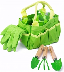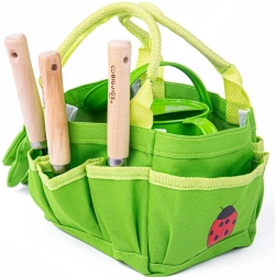 Ta zeleni vrtnarski set za otroke BIGJIGS TOYS spodbuja učenje skozi igro in ljubezen do narave. Platnena torba z motivom pikapolonic ohranja vso opremo pregledno pri roki, medtem ko kakovostni leseni ročaji in kovinski nastavki orodja zagotavljajo varno in vzdržljivo uporabo. Idealno za prve zasaditve, presajanje in zalivanje skupaj s starši.