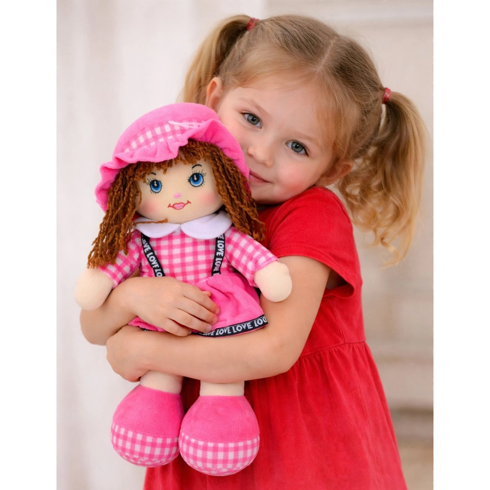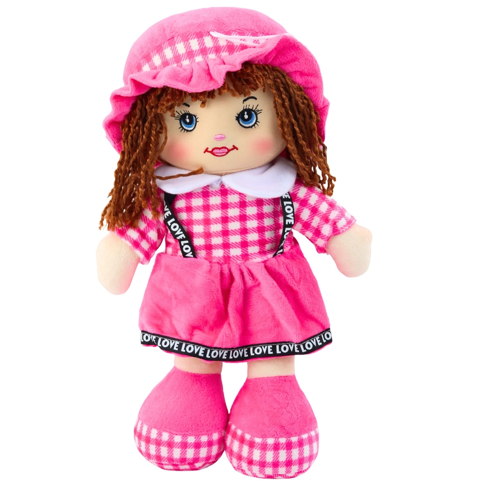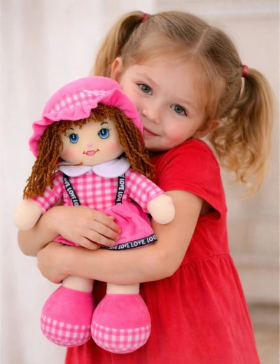 Ta mehka punčka v rožnati karo obleki bo razveselila otroke že od najzgodnejših let. Zahvaljujoč lahki in mehki zasnovi jo je enostavno držati, nositi in objemati, kar spodbuja občutek varnosti in čustveni razvoj. Kratki predivni lasje, izvezene oči in nasmeh punčki dajejo prisrčen izraz ter zagotavljajo varno igro brez ostrih delov.
