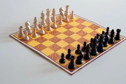- Popoln set – 32 skrbno izdelanih lesenih figur in zložljiva šahovnica.