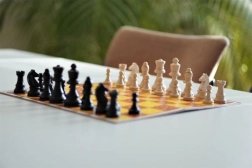 Lahka in enostavno zložljiva šahovnica velikosti 33 × 33 cm se preprosto prenaša, idealna za doma in na poti.