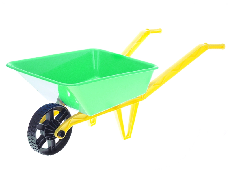 Otroški samokolniček za pesek je odličen pomočnik za male vrtnarje in graditelje. Zaradi lahkega plastičnega ogrodja se zlahka potiska tudi polno naložen in zmore prevažati pesek, kamenčke ali druge drobnarije. Privlačna kombinacija zelene kadice in rumenega ogrodja otroke pritegne na prvi pogled.