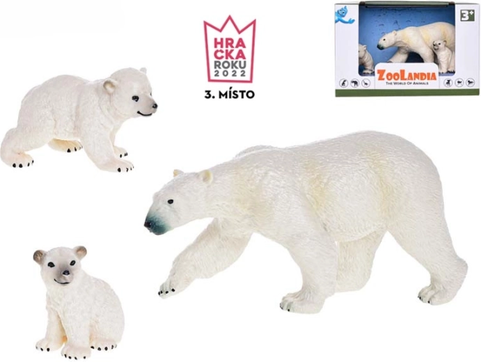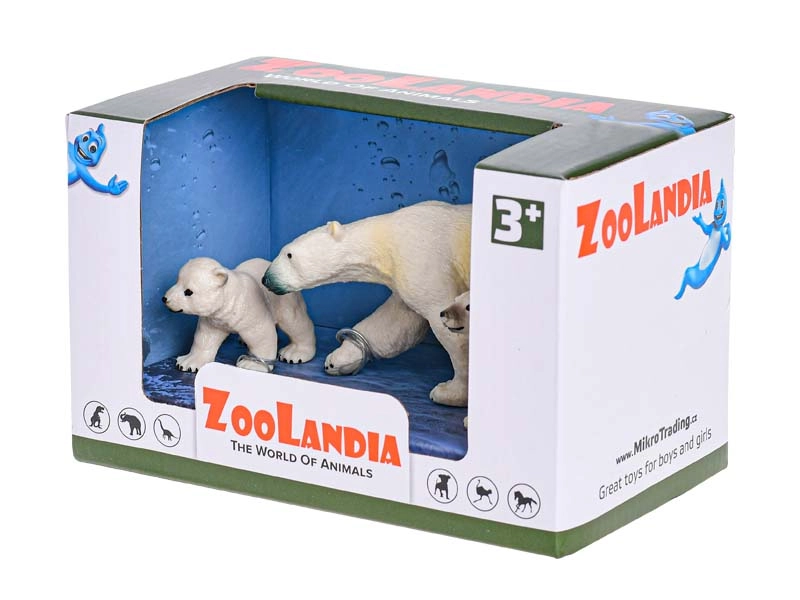 Odrasla polarna medvedka in dva mladiča omogočata ustvarjanje zgodb o družini, skrbi in življenju v ledeni divjini.