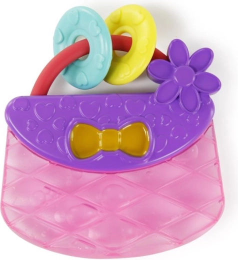 Olajšajte boleče dlesni in podprite senzorični razvoj z zabavnim grizalom v obliki torbice znamke BRIGHT STARTS. Polnjeno z vodo za prijetno hlajenje, z teksturiranimi površinami za masažo dlesni ter lahkim, enostavno oprijemljivim ročajem z 2 obročkoma za cingljanje in igro. Primerno za otroke od 3 mesecev.