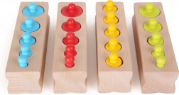 Leseni barvni valjčki pomagajo otrokom razumeti vzorce in sprejemati odločitve o pravilnem mestu postavitve.
