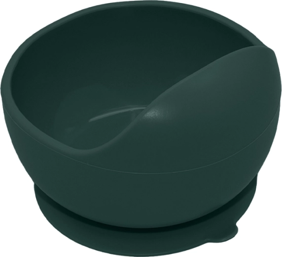 Visok, zavihan rob pomaga pri lažjem zajemanju, široka prisesalna baza trdno drži na mizi ali pladnju jedilnega stolčka.