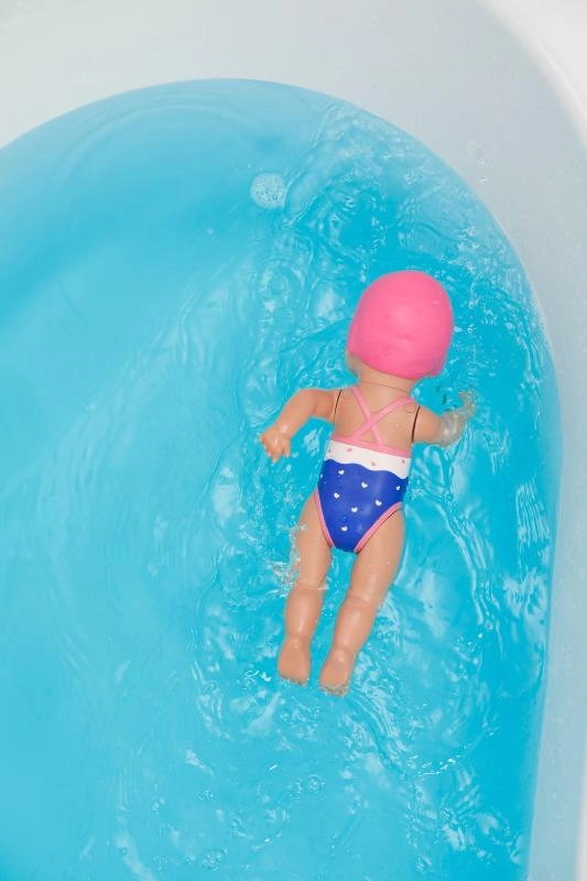 Spoznajte punčko BABY born plavalka Lizzie velikosti 30 cm – idealno spremljevalko za kad, bazen in jezero. Zahvaljujoč mehanskemu navijanju rok plava sama s gibi kravla in delfina, in to povsem brez baterij. Veseli kopalni kostim in plavalna kapica zagotavljata veliko zabave ter hkrati pomagata otrokom graditi zaupanje v vodi že od 1. leta.