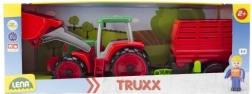 Predstavljamo vam Lena Truxx traktor z vozom, idealno igračo za male kmete. Ta plastični traktor izstopa s svojim robustnim dizajnom v rdeči in zeleni barvi, ki ga dopolnjuje funkcionalna zajemalka in odstranljiv voz. V kabini traktorja je nameščena mala figurica voznika, ki igri dodaja realističnost.