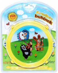 Priljubljen otroški motiv KRTKA združuje zabavo in učenje. Lahek plastični boben s premerom 20 cm je enostaven za držanje in zahvaljujoč priloženim paličicam lahko otrok začne bobnati takoj. Trak omogoča igranje stoje ali na sprehodu, zato je boben odličen spremljevalec doma in na prostem.