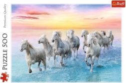 Sestavljanka vsebuje 500 kosov, ki prikazujejo lepoto in eleganco belih konj v polnem teku. Z sestavitvijo te sestavljanke boste dobili sliko dimenzij 48x34 cm.