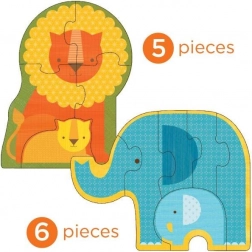 Predstavljamo Petit Collage Prve Uganke Mladički Safari, idealno izbiro za male raziskovalce od 2. leta starosti. Ta set vsebuje štiri živalice, ki jih bo vaš otrok postopoma odkrival v obliki manj ali bolj zahtevnega sestavljanja s 3 do 6 deli.