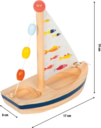 Lahka lesena ladjica s tekstilnim jadrom je idealna za vodne igre v kadi in bazenu. Spodbuja domišljijo in samostojno igro.