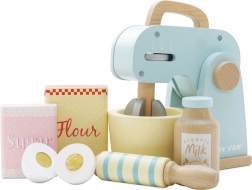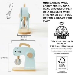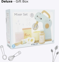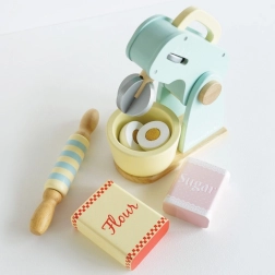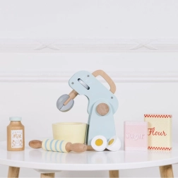 Stilski kuhinjski robot Le Toy Van otrokom prinaša pristno izkušnjo peke v njihovi otroški kuhinji. Z vrtljivo metlico, lesenim valjarjem in skledo si lahko »spečejo« torto, piškote ali kolač. Pastelne barve in retro dizajn so prava paša za oči, kakovostna lesena izvedba pa zagotavlja dolgo življenjsko dobo.