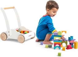 Del vozička je 45 barvitih kock, ki spodbujajo ustvarjalnost in razvoj motoričnih spretnosti.