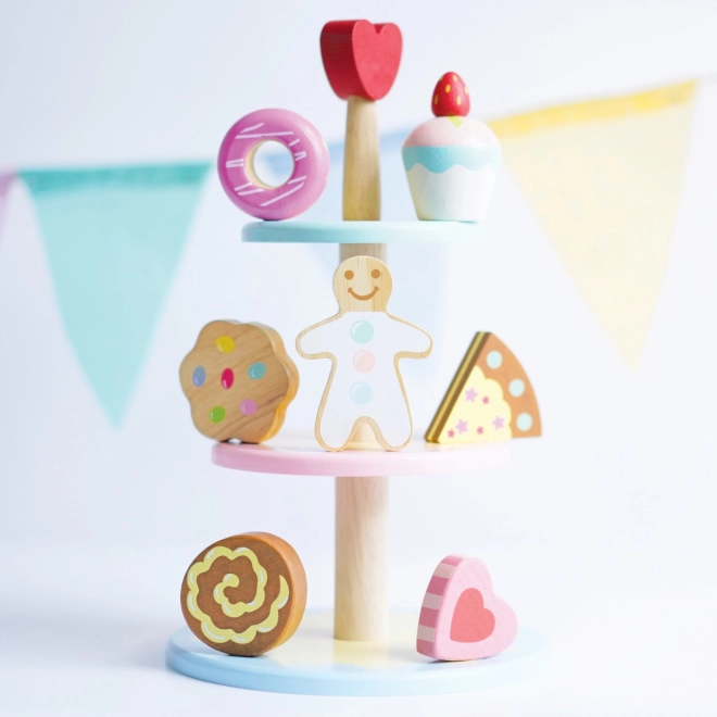Odkrijte čar otroške igre s tem večnadstropnim stojalom s slaščicami znamke Le Toy Van. Ta čudovita tristopenjska stojala je polna pisanih lesenih slaščic, ki spodbujajo domišljijsko igro in razvijajo fino motoriko.