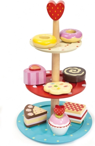 Večnadstropno stojalo s slaščicami Le Toy Van je idealna igrača za vaše otroke. Vsako nadstropje ponuja raznoliko pisane slaščice, kot sta krof in mafini, ki spodbujajo domišljijo in ustvarjalnost. Varnost je zagotovljena z zaobljenimi robovi in uporabo netoksičnih barv na vodni osnovi.