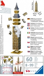 Prinesite košček Londona domov s tem podrobnim 3D modelom slavnega stolpa z uro. Sestavljanka zagotavlja ure zabave, ne glede na to, ali se želite igrati sami, ali skupaj z družino in prijatelji. S sestavljanjem sestavljanke boste vadili kognitivne spretnosti in reševali ustvarjalne izzive. Dodatek te arhitekturne miniature v vašo zbirko vas bo obogatil z izobraževalno in rekreacijsko izkušnjo.