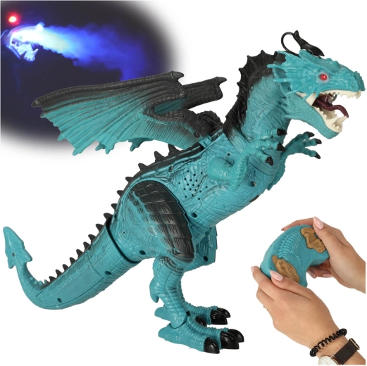 Ta dinozaver Smok je odlična izbira za vse otroke, ki obožujejo prazgodovinske živali in interaktivne igrače. Z daljinskim upravljanjem v obliki fosile lahko aktivirate različne funkcije, vključno z realističnim rjovenjem, svetlečimi očmi in usti ter gibanjem glave in kril.