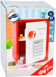 Zabaven in izobraževalen lesen sef blagovne znamke small foot pomaga otrokom odkrivati svet denarja in varnega shranjevanja zakladov. Sef se odpira s kombinacijo, ima vrtljiv številčnik z zvokom in pritiskalne gumbe. Priložen je bogat komplet dodatkov – evrski bankovci, zlate in srebrne kovance ter lesene zlate palice. Odličen za igranje vlog, razvoj finančne pismenosti in fine motorike.