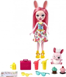 Lutka Bree z dolgimi roza lasmi in zajčjimi ušesi je pripravljena na potovanje. Njena obleka vključuje poletno obleko s cvetličnim tiskom, čevlje in sončna očala.
