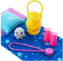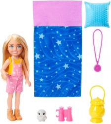 Odkrijte naravo z lutko Barbie Chelsea, navdihnjeno s serijo BARBIE It Takes Two. Chelsea je pripravljena na celodnevno zabavo v rožnatih hlačah z naramnicami in pohodnih čeveljčkih, medtem ko dodatki, kot so dvojnogled, kompas in svetilka, spodbujajo radovednost in pustolovski duh. Po dnevu, polnem doživetij, jo spravite v mehko spalno vrečo z zvezdicami, z blazinico pa udobno zaspi.